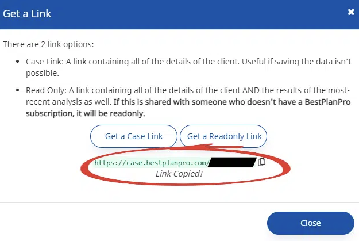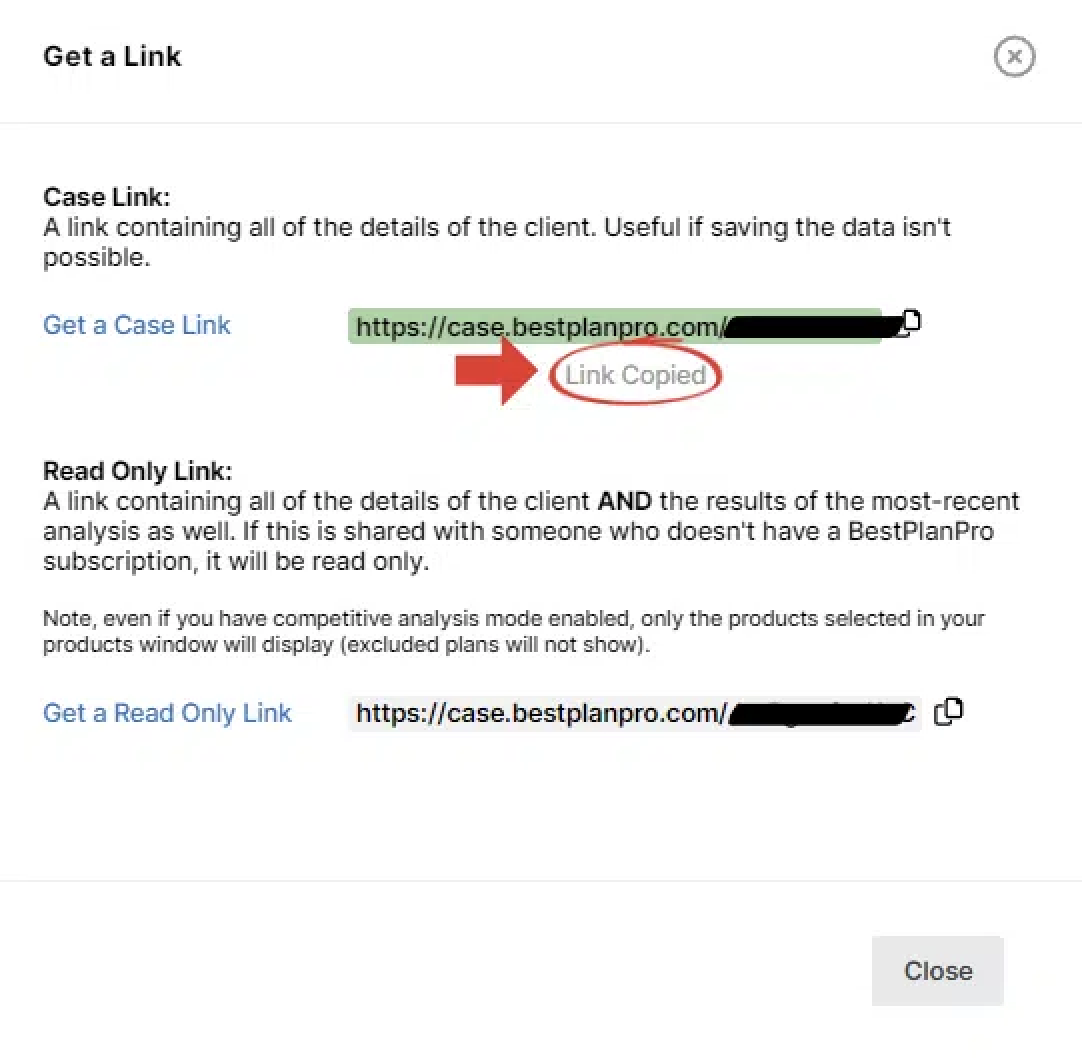 After you click OK on the Windows Version, youโll have a link copied to your clipboard; you can paste that link wherever youโd like. The link copied to your clipboard will look something like this: case.bestplanpro.com/V11VcqIc3S9.