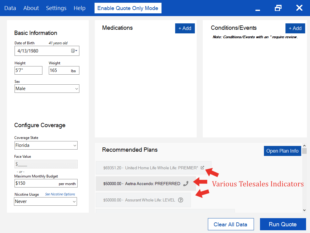 You can turn on the feature to show which plans offer telesales after you run an analysis. In Windows Version, go to Settings > Producer Settings and select Show Telesales Indicators. For BPP Online Version, go to Settings and click on Click to Show Telesales Indicators. Windows Version