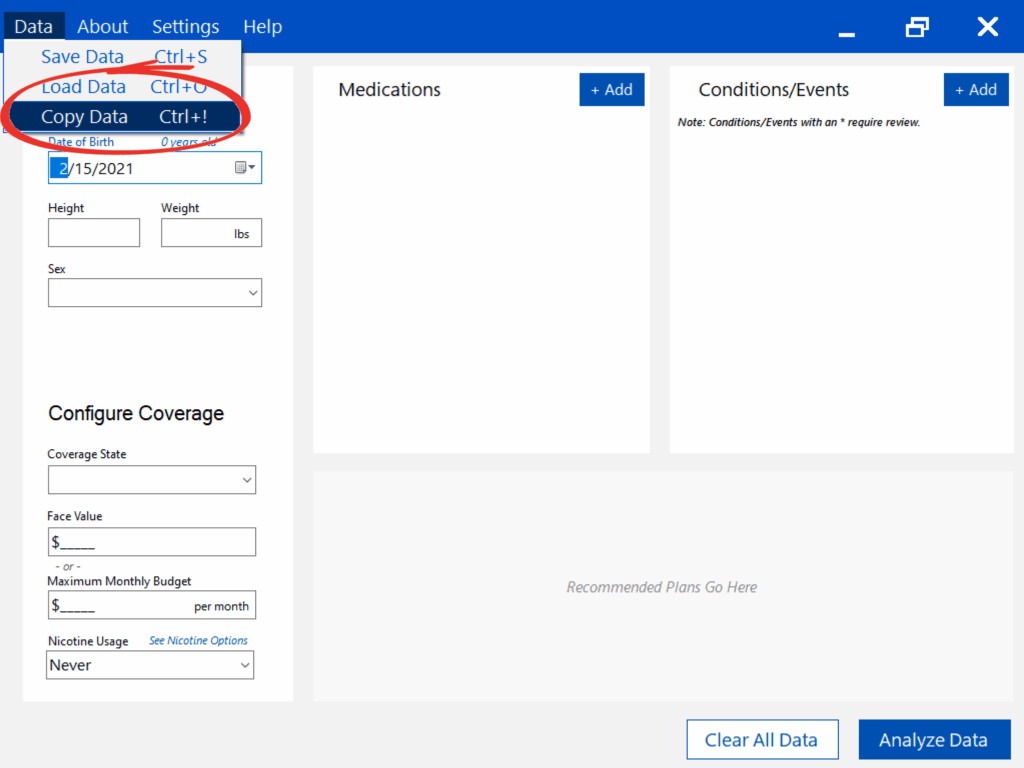 In BestPlanPro Windows Edition, this feature can be found under Data > Copy Data. The keyboard shortcut Ctrl+! works as well.