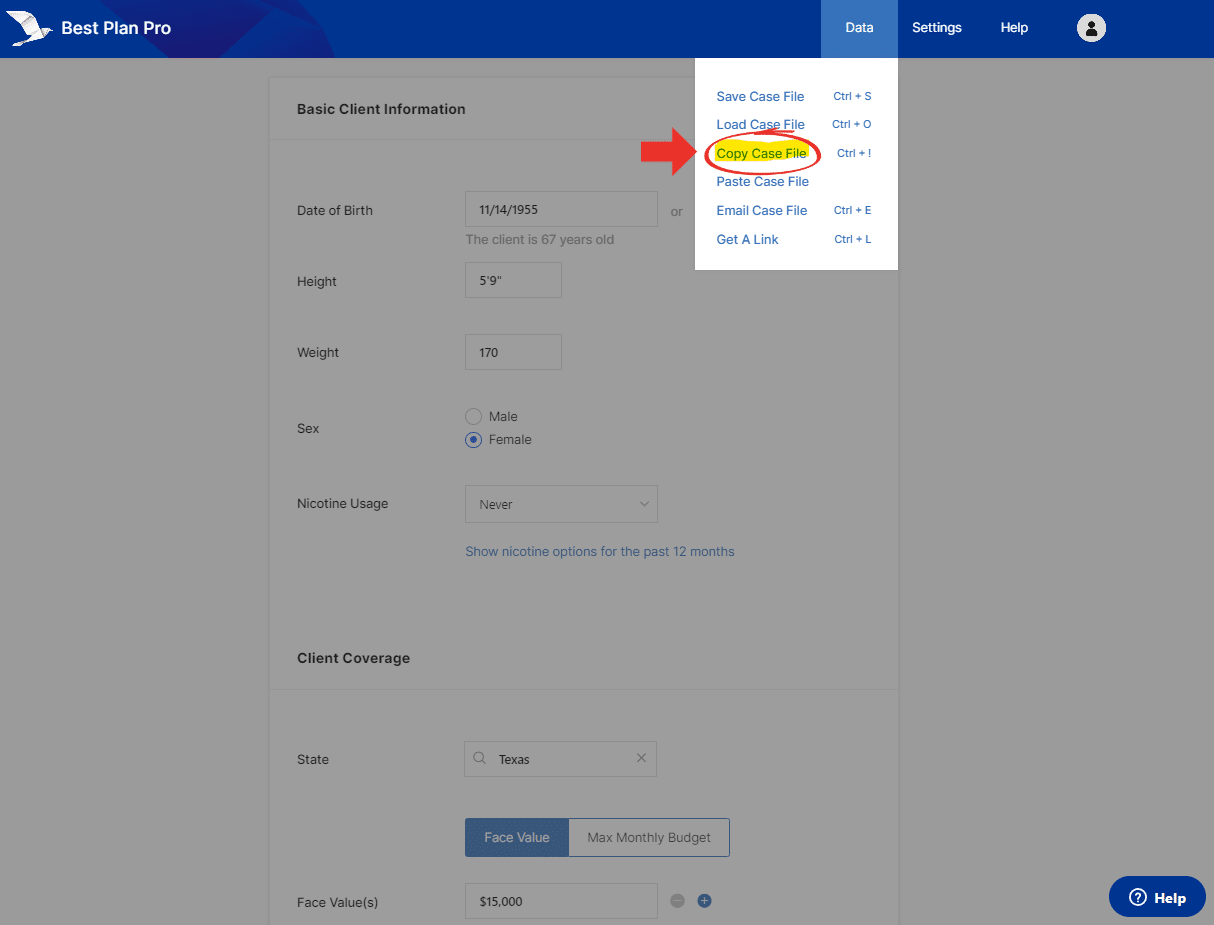 Here’s how to obtain a plain-text copy of your current case to build a profile or portfolio on a client, send to an underwriter if you have a question, or share with a team member who doesn’t have Best Plan Pro.