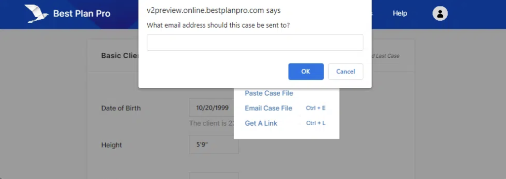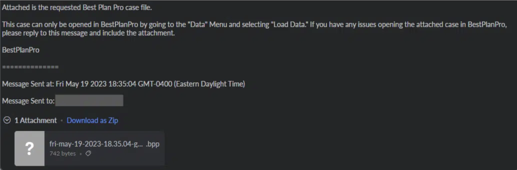 Best Plan Pro allows you to share your work with colleagues or yourself in just a few clicks. After creating a case profile, email the case with our built-in emailing feature. When you or your colleague receives it, the case can be loaded into BPP Offline or BPP Online versions.