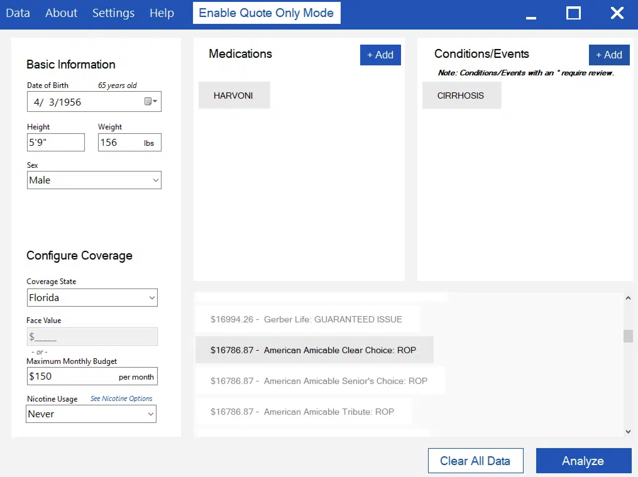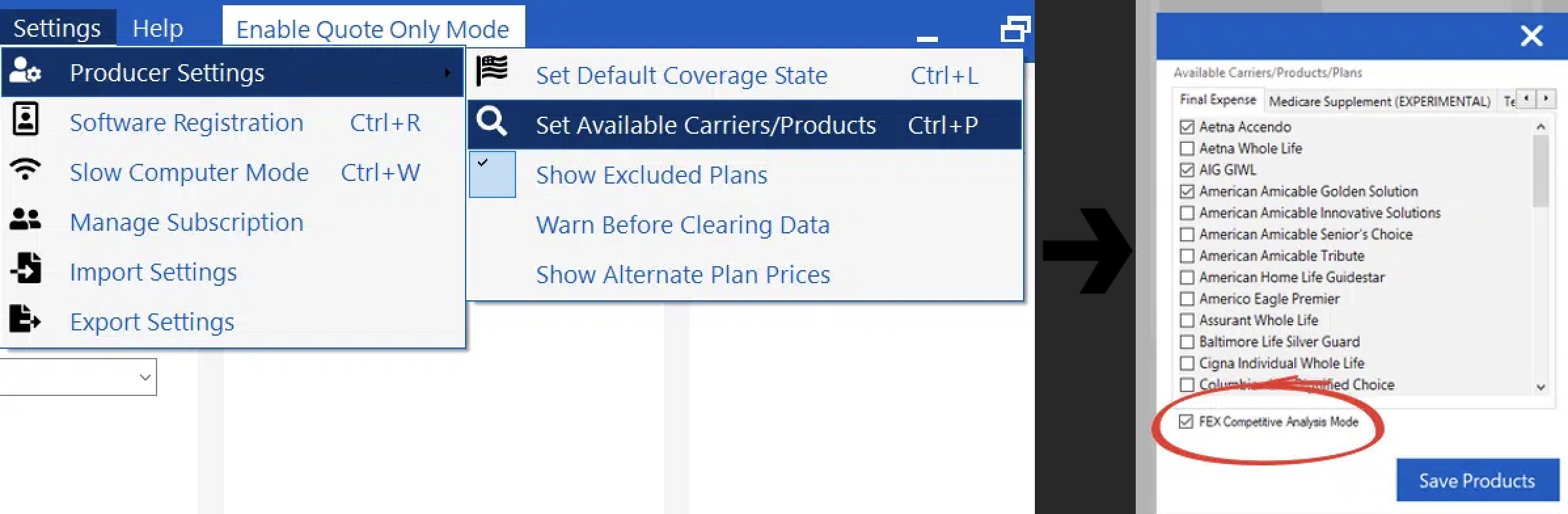 Please note that only Final Expense products will be analyzed if you have FEX Competitive Analysis mode enabled (this will bypass Medicare Supplement and Term products).