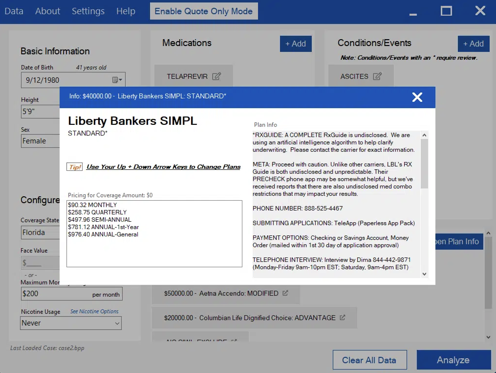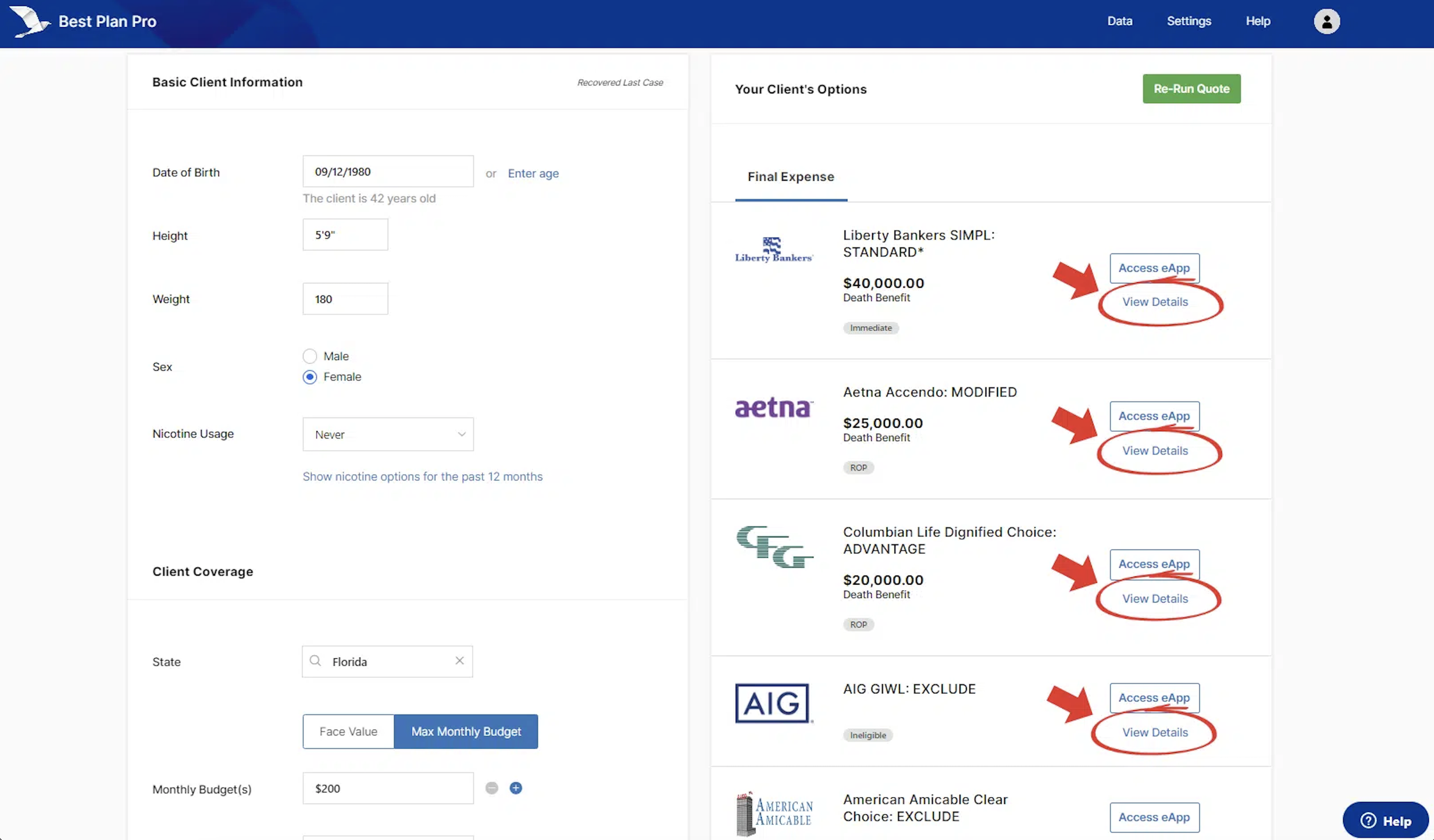 Best Plan Pro helps simplify underwriting by giving you all your options in one place. Just click on a recommended plan and youโll see all of the information you would normally find in your underwriting documents.