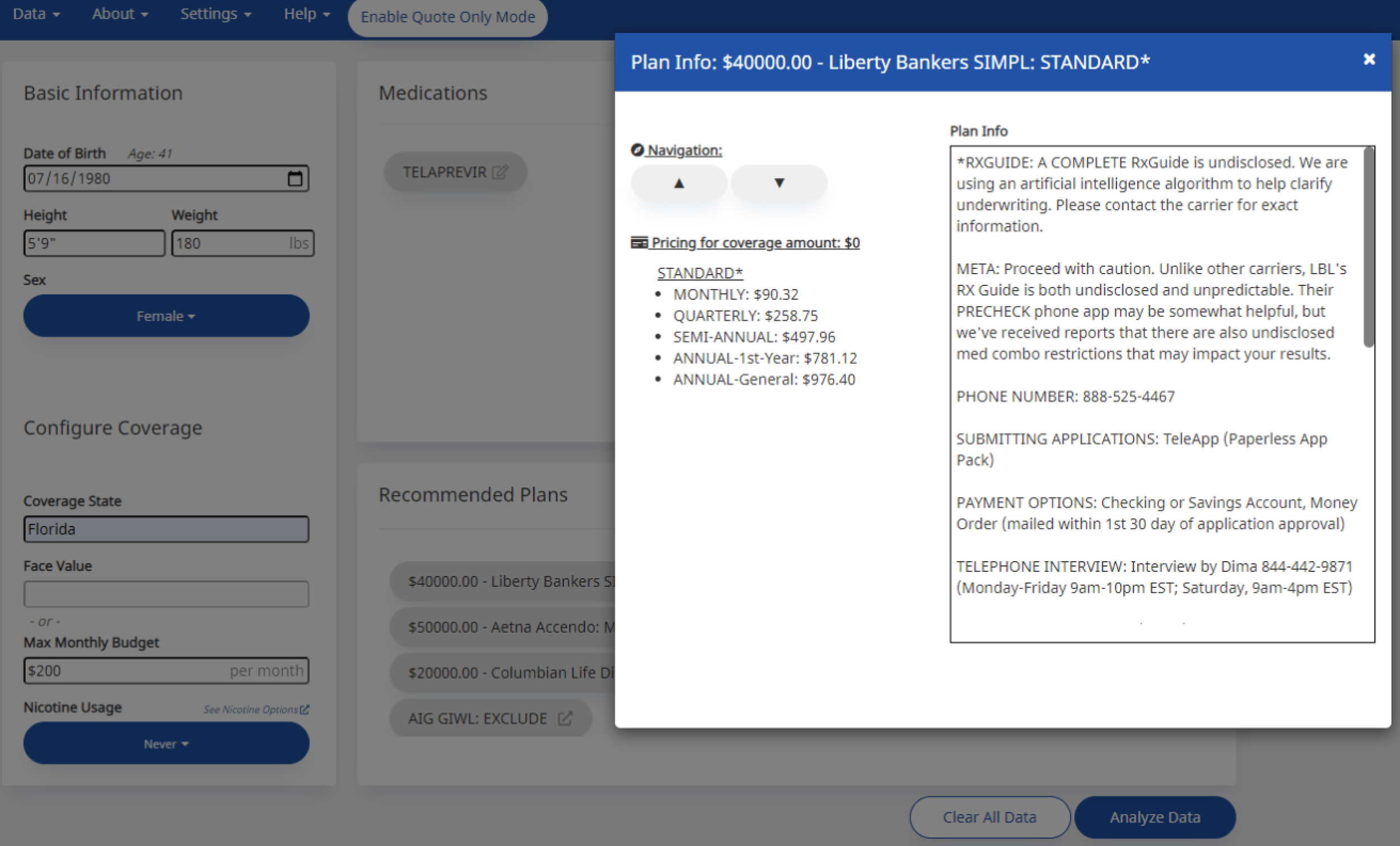 Also, for the plans your client is eligible for, BPP will calculate the monthly, quarterly, and semi-annual costs for you to help give your client a more visual look at the cost of coverage. You can evenย Show Alternate Pricesย to see all the prices for the preferred/graded/modified options that are offered (in case your client โforgotโ they had cancer a few years ago).